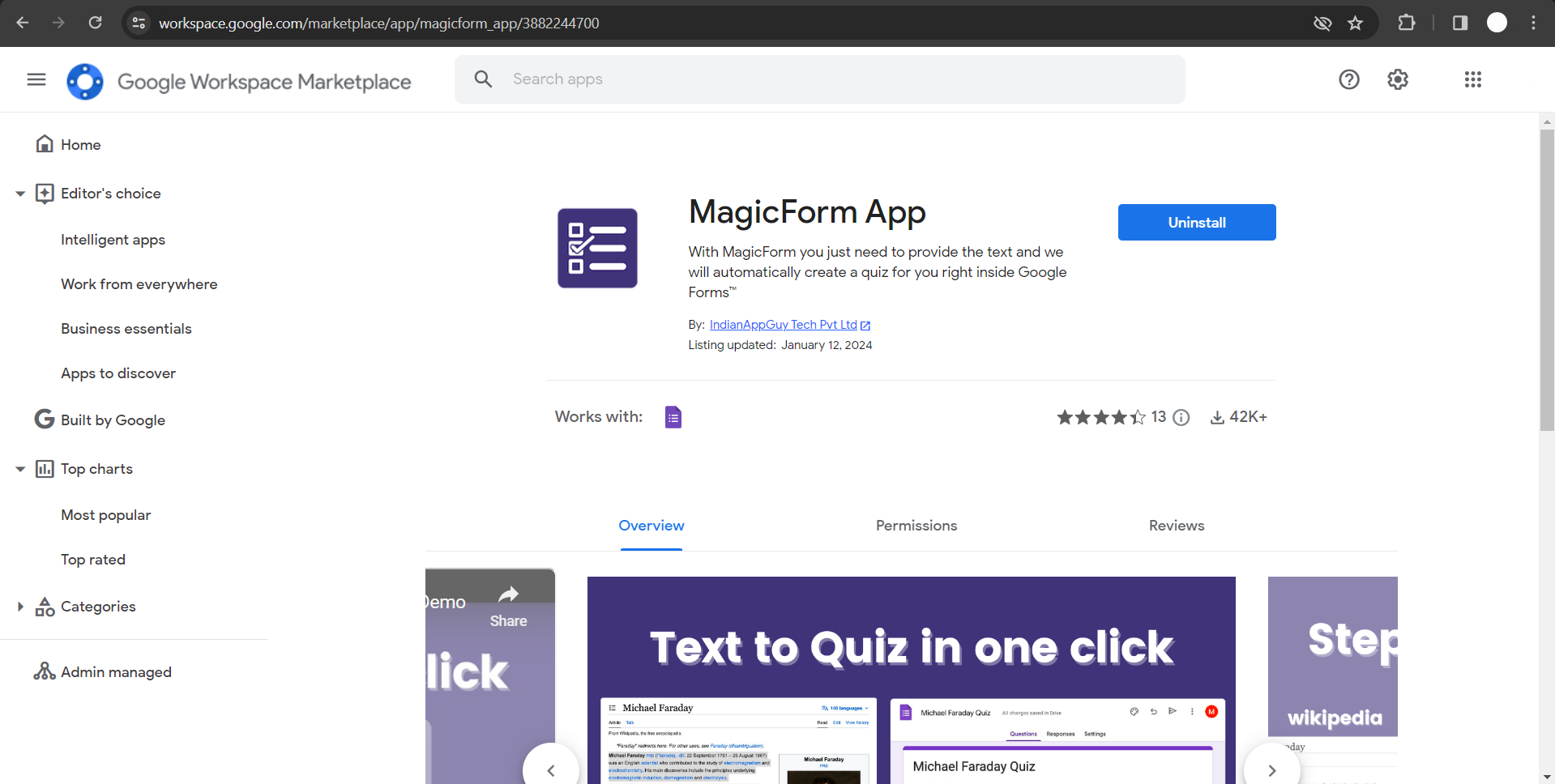Click on "Install the App" to integrate MagicForms with Google Workspace.