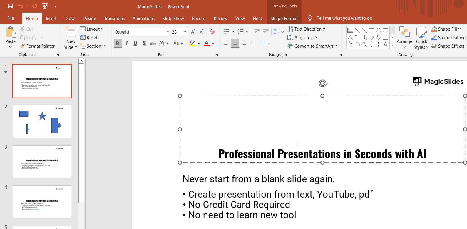 Start by opening your PowerPoint presentation and navigating to the slide with the object (shape, text, or background) you want to recolor.