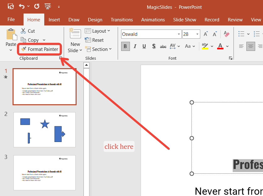Follow these steps to use Format Painter in PowerPoint effectively.