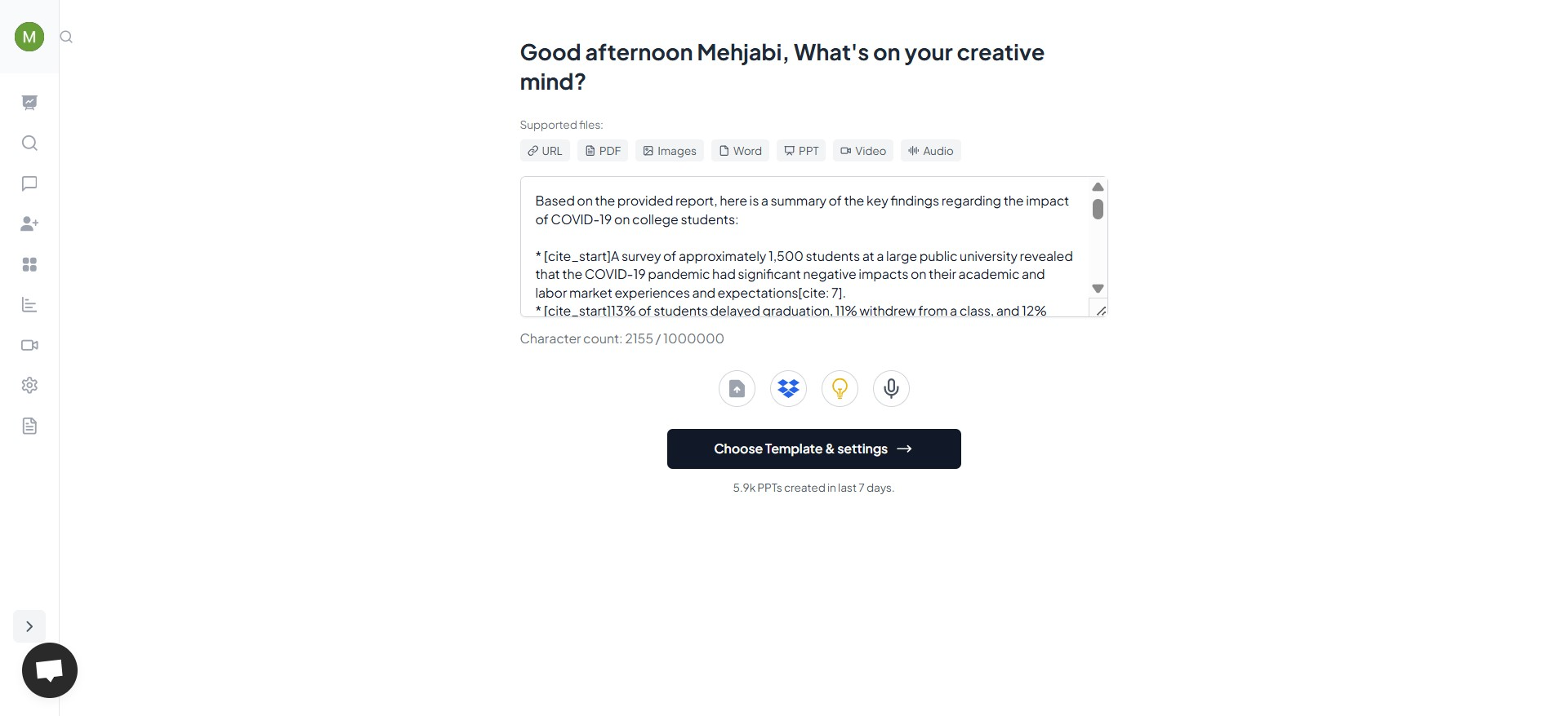 - In a few seconds, your Google Slides deck or downloadable PowerPoint file is ready