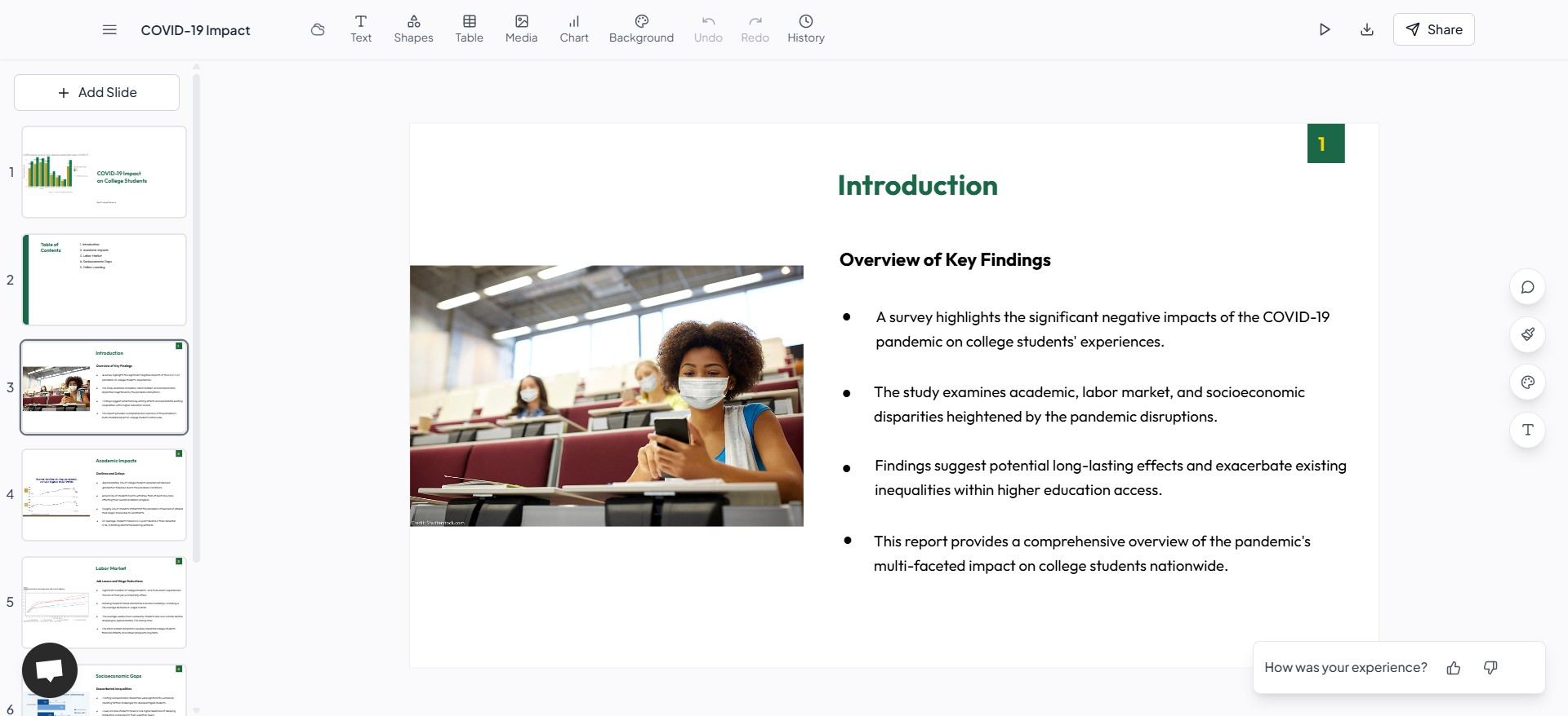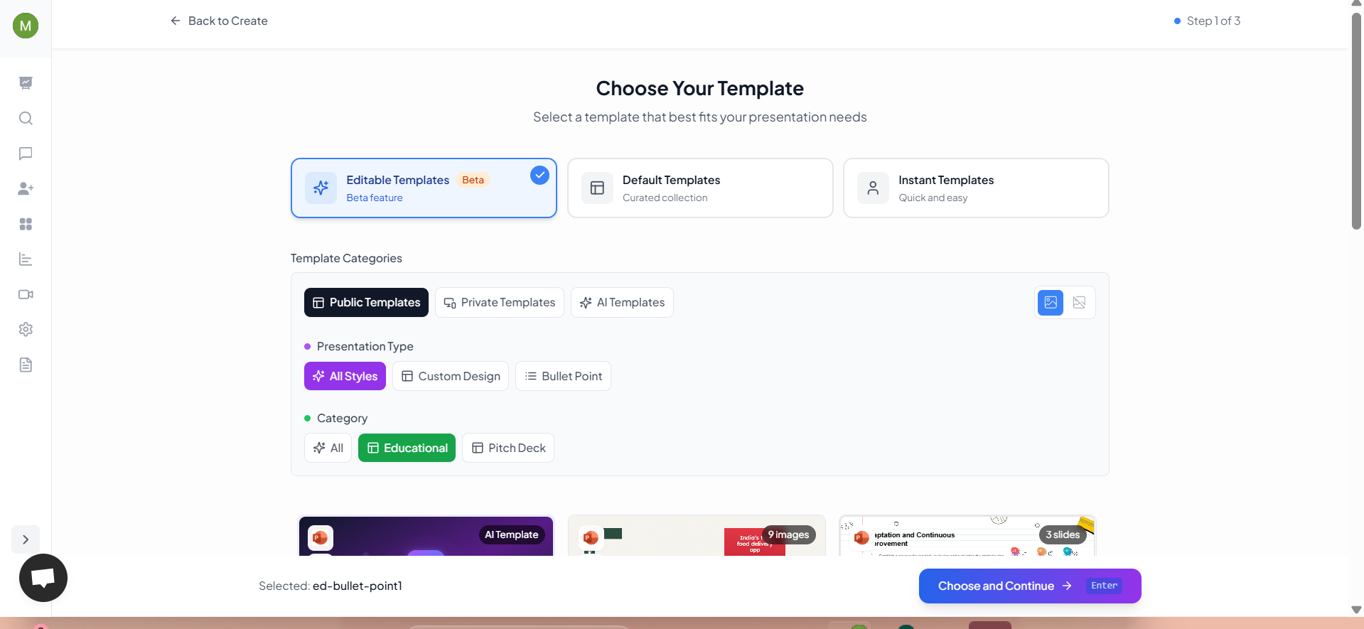- Document Upload – Upload research to auto-generate slides