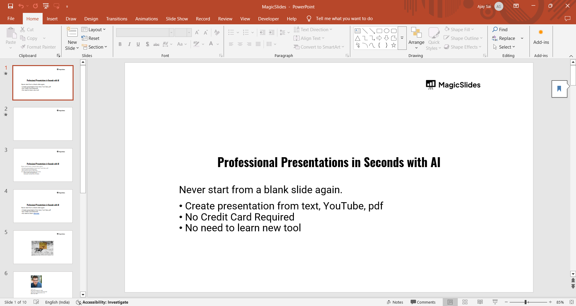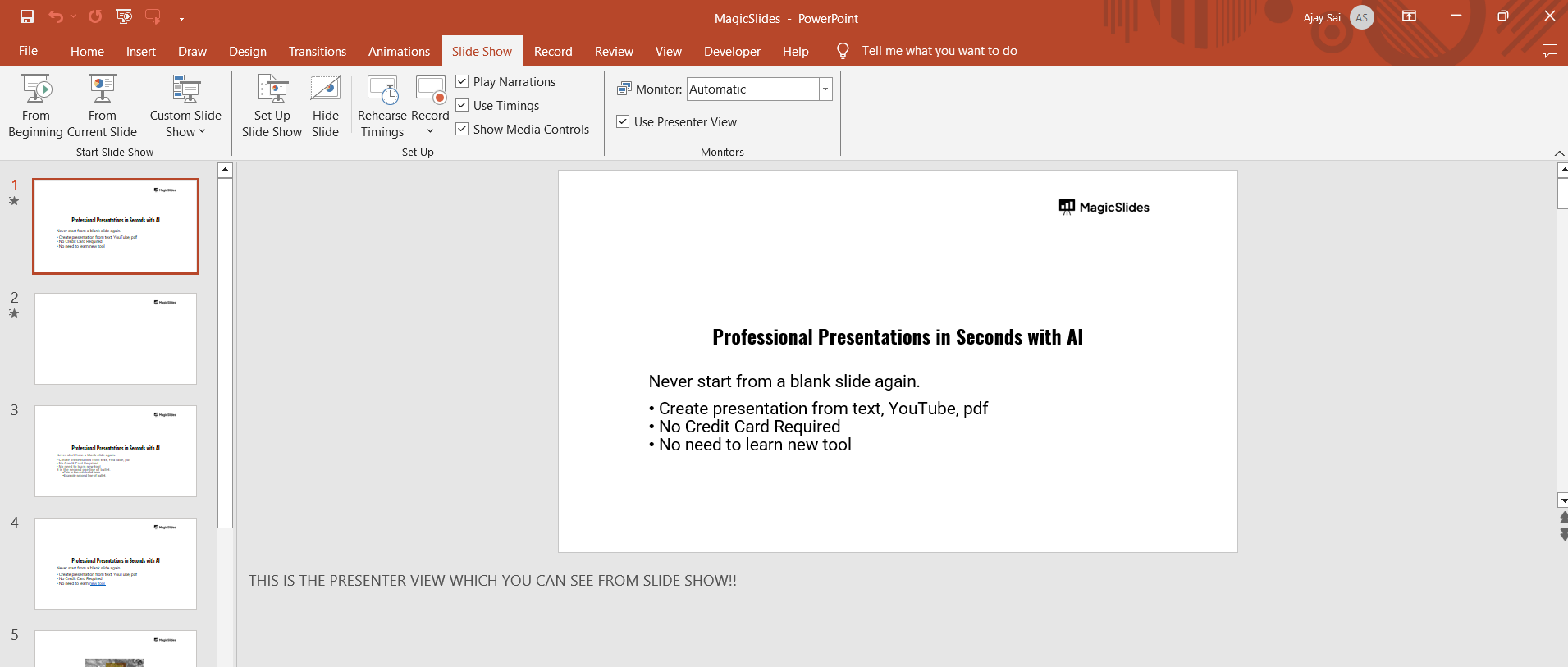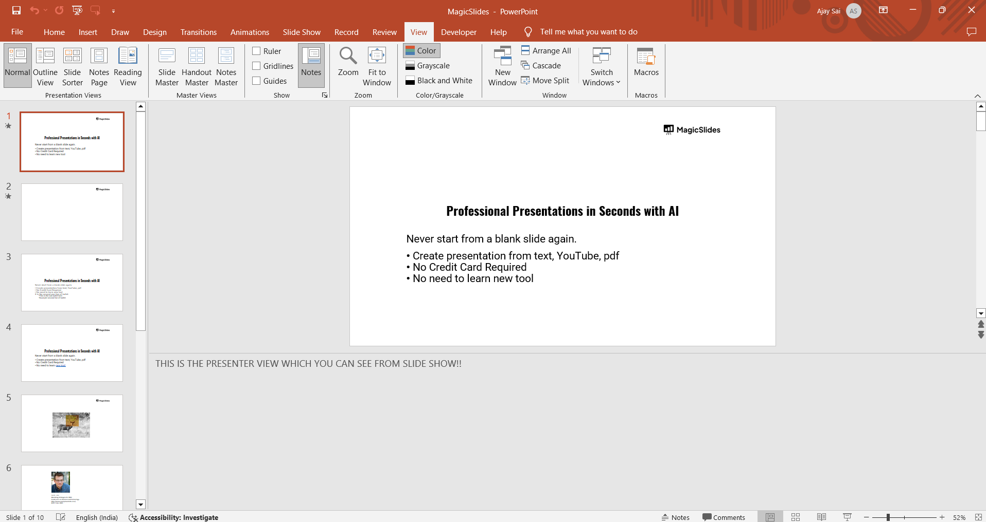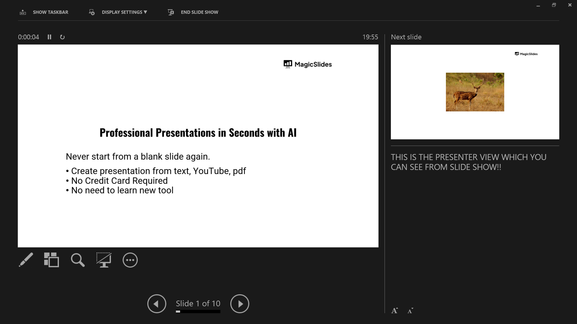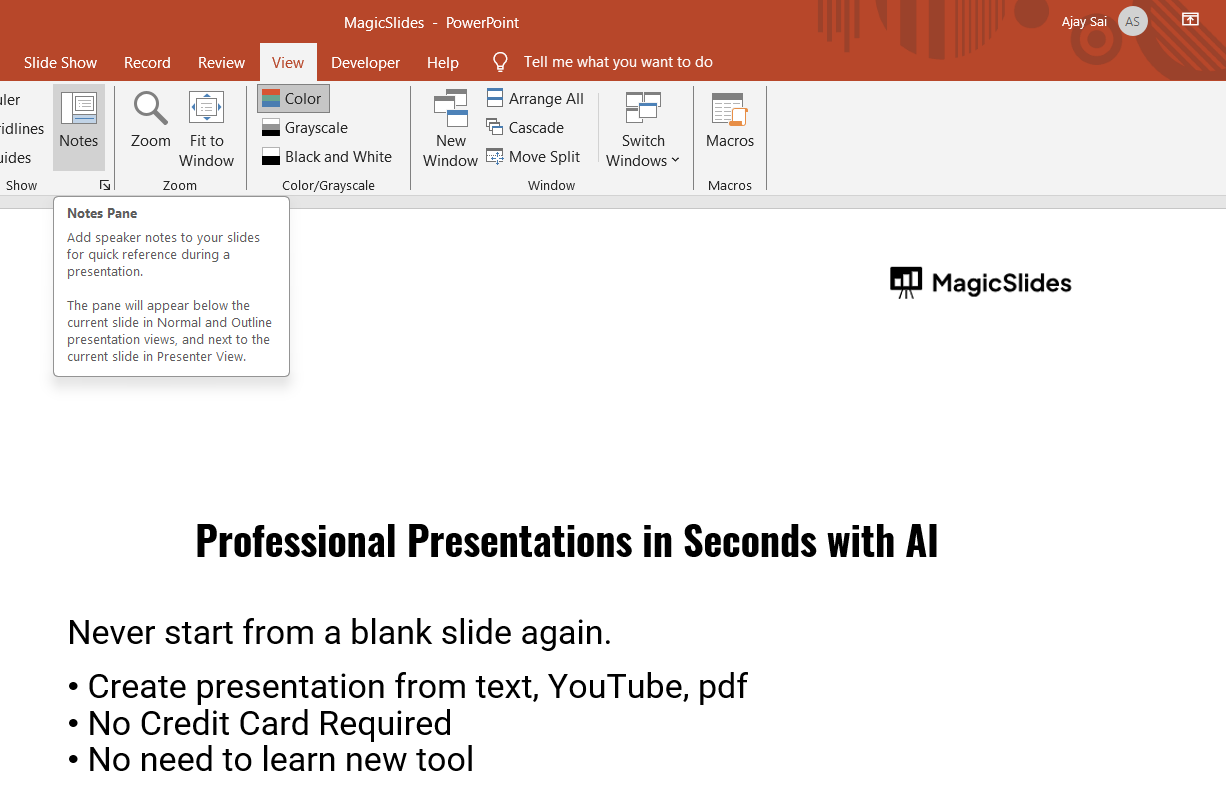 Presenter notes are great for delivering smooth presentations. For even more convenience, use MagicSlides.app an AI tool that creates fully-structured slides (with notes!) from topics, PDFs, or even YouTube links in seconds!