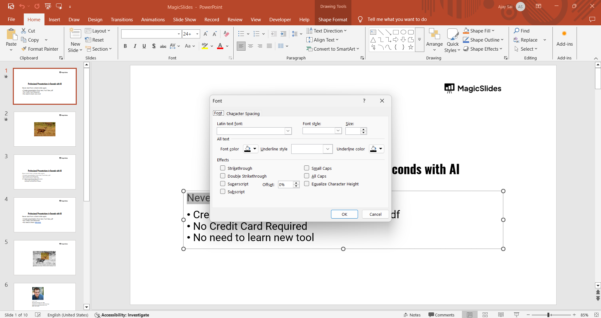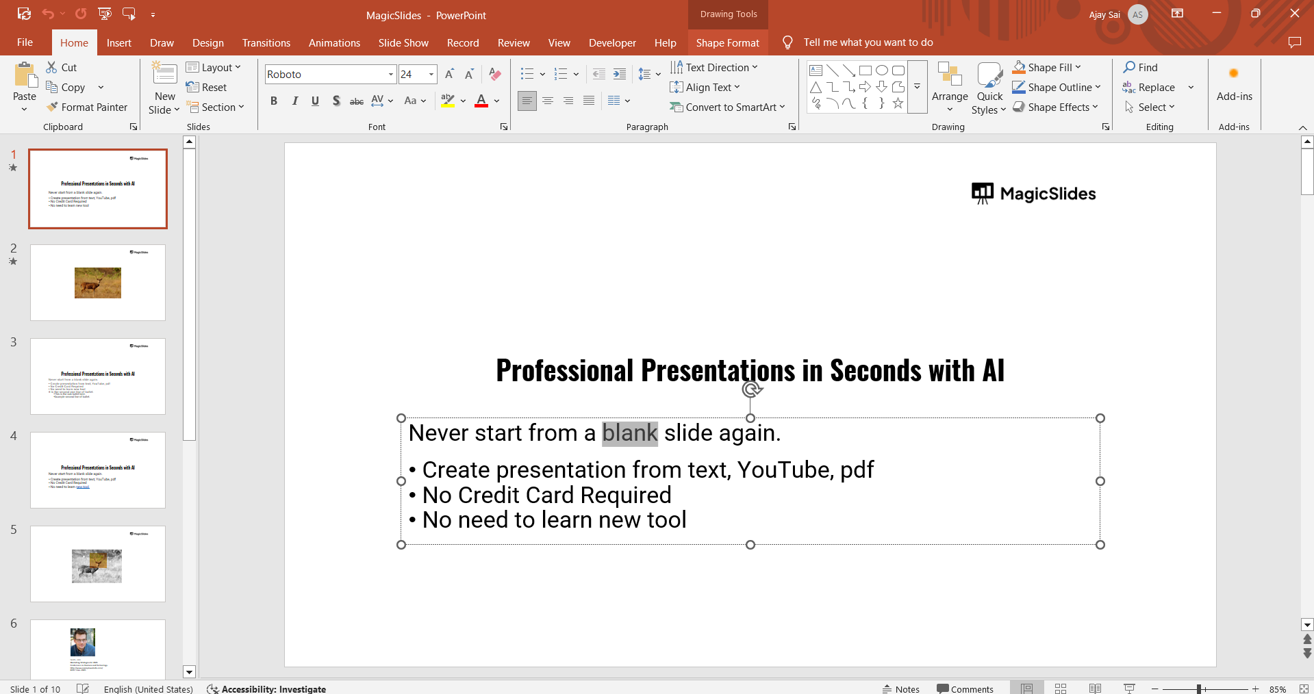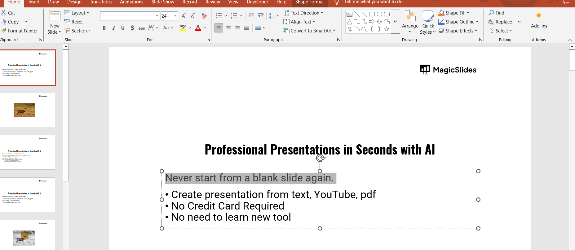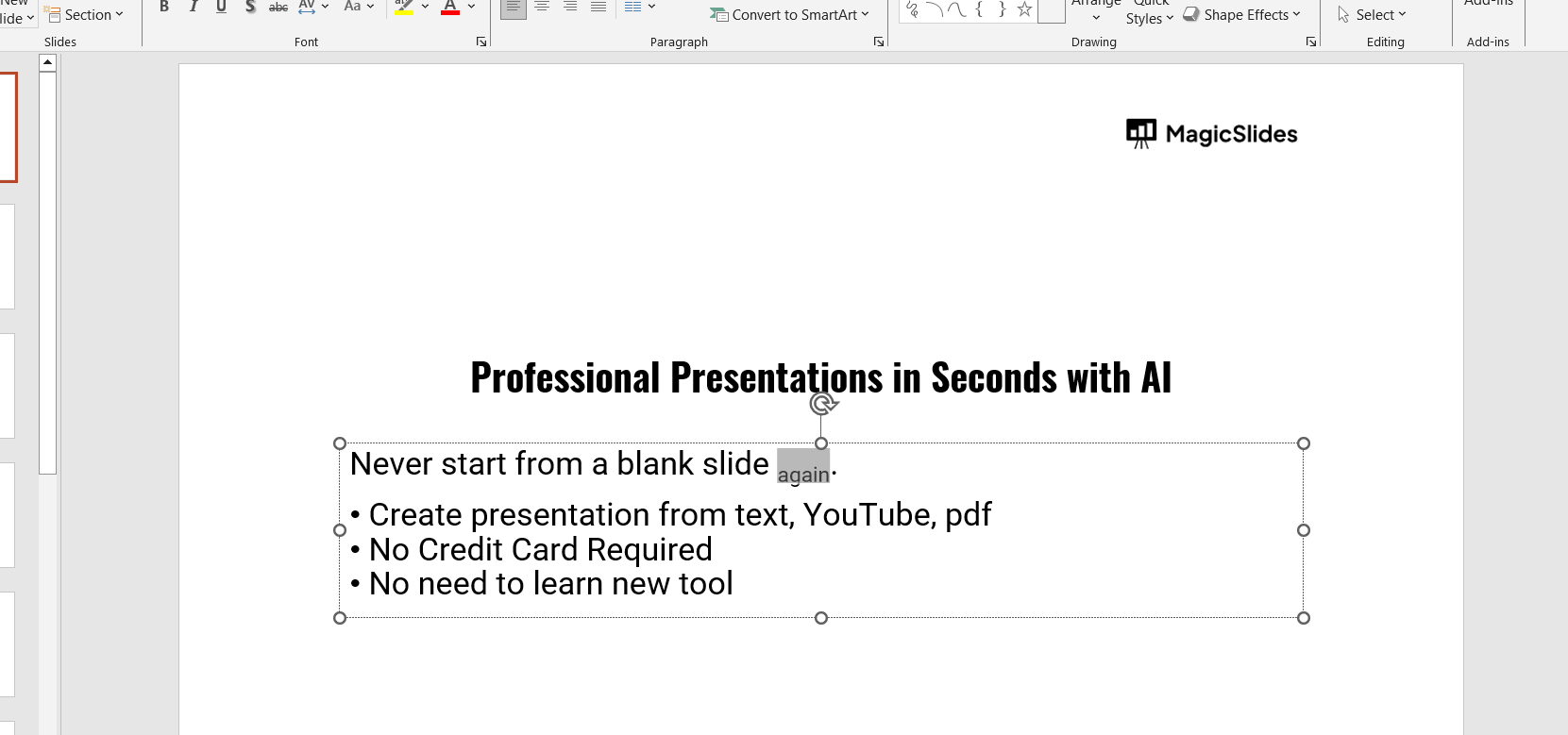 Using subscript in PowerPoint is useful for scientific and mathematical notations. But if you want AI to handle your slide formatting effortlessly, try MagicSlides.app AI-powered presentations generated in seconds!