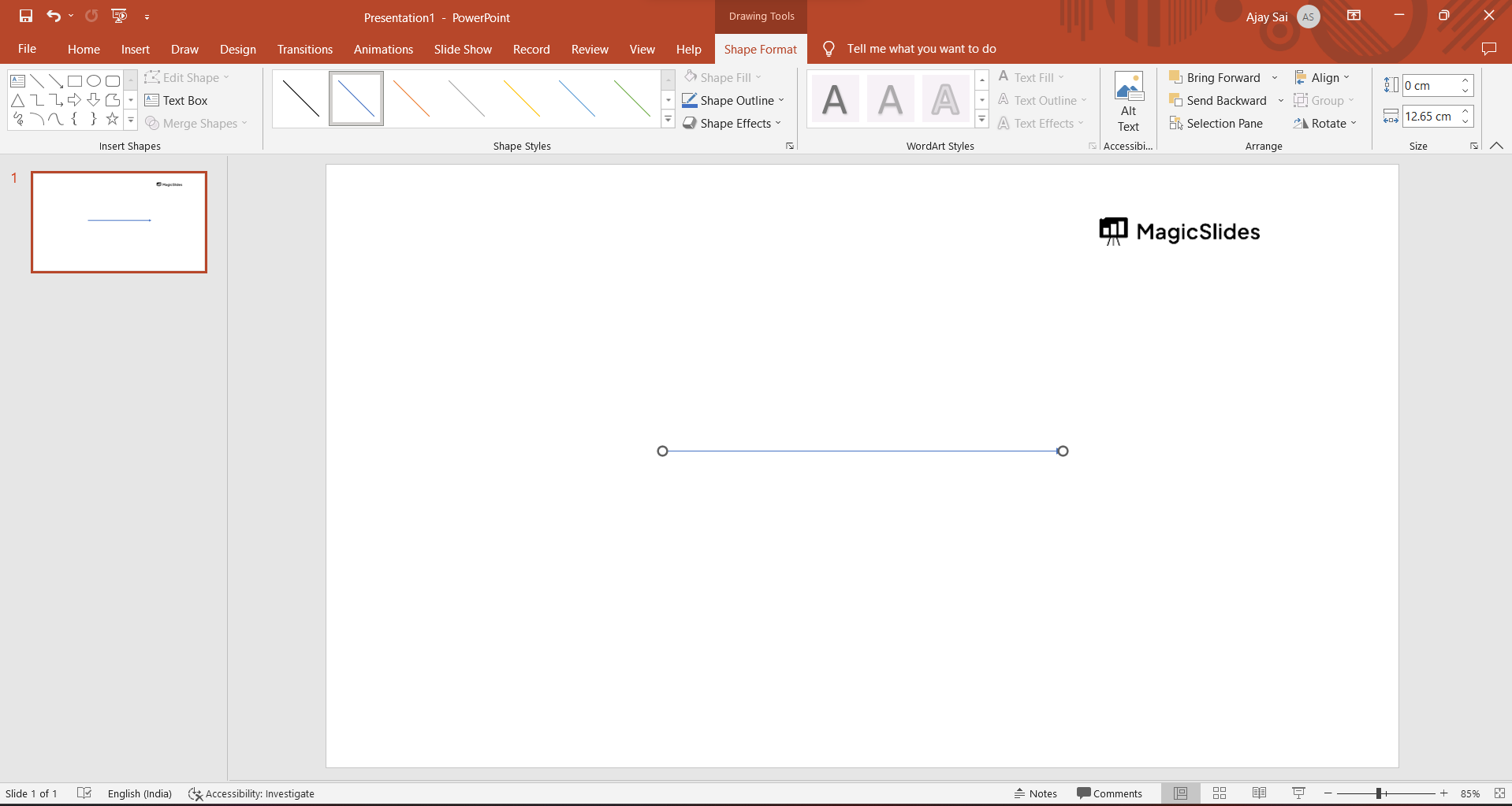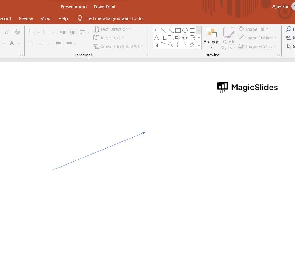 - Click and drag on the slide to draw the arrow shape. The arrow will appear with its default size.