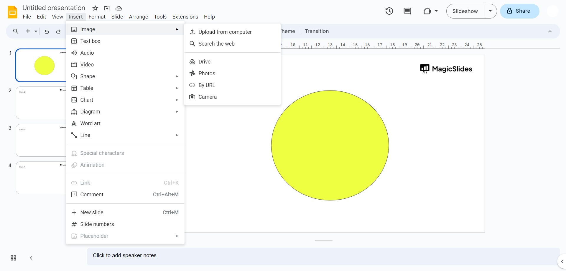 - Click on the slide where you want to add the circular image.