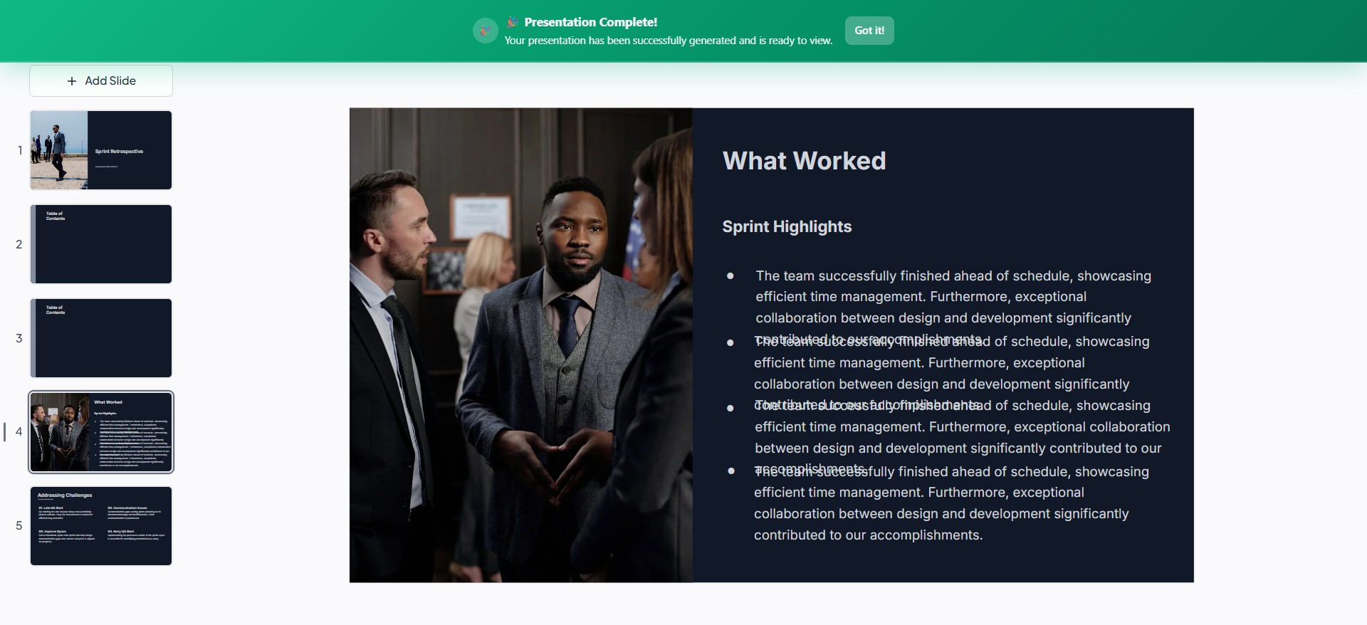 Step 5: Click ‘Generate Slides’