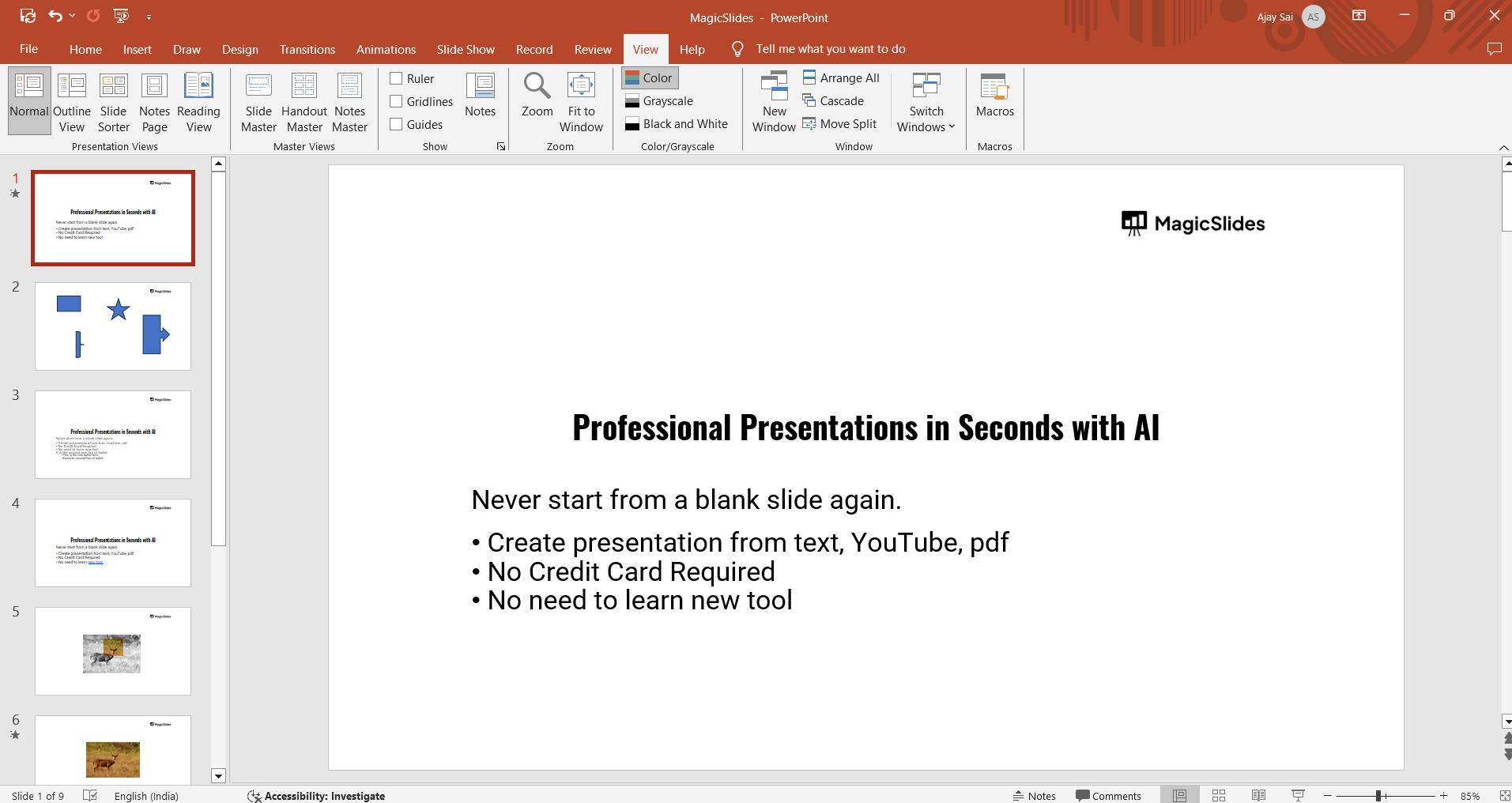 Once you’re satisfied with the new slide order, go back to the Normal View by clicking on the Normal option in the View tab.