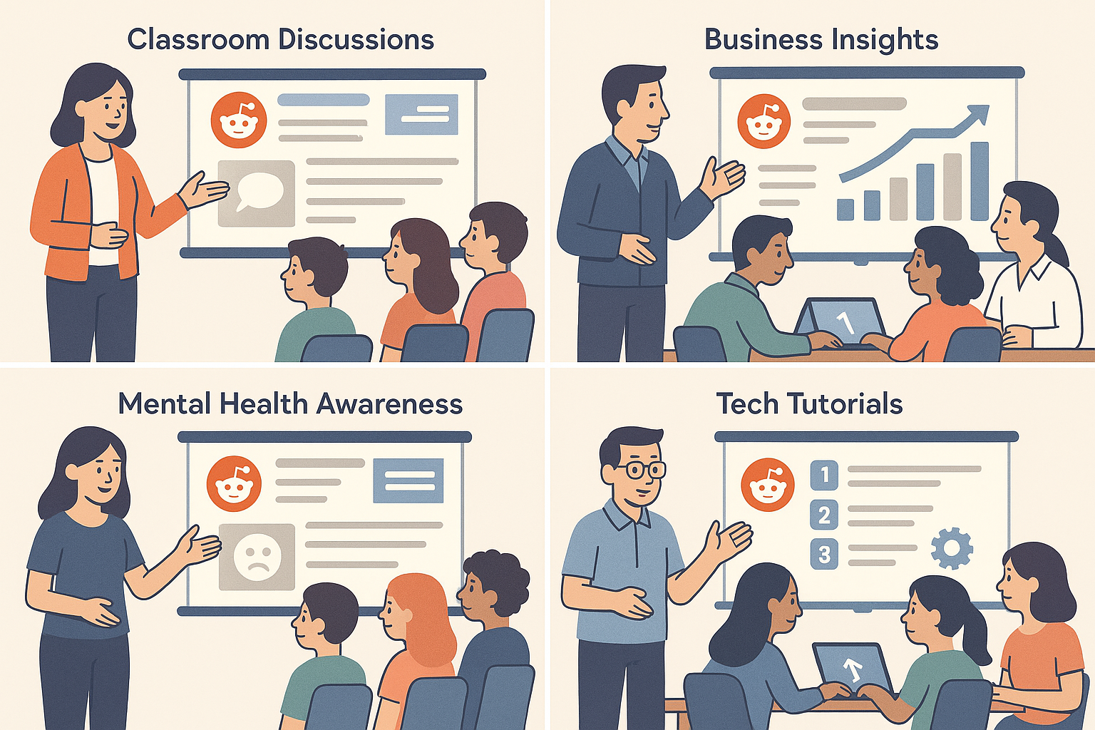 Communities like r/depression or r/ADHD have deep, personal insights. With care and permission, these threads can be turned into educational slide decks for awareness campaigns or workshops.