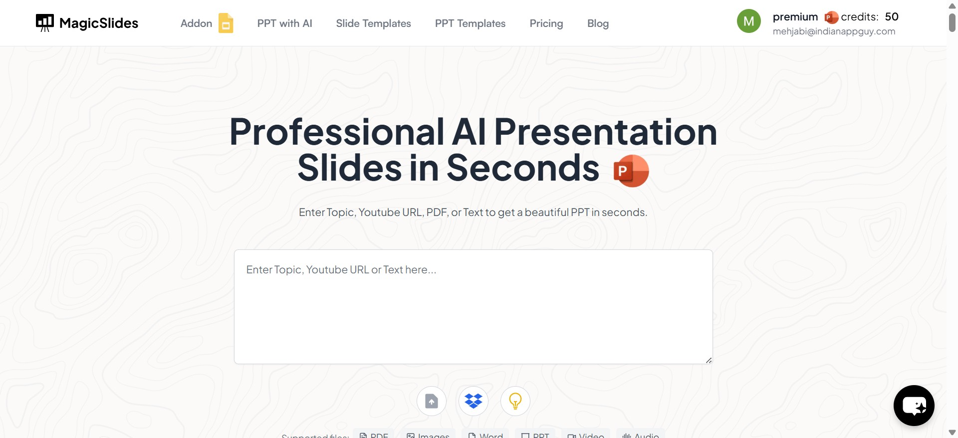 It is an AI-driven tool that automates PowerPoint creation. It allows users to generate high-quality presentations instantly by simply entering a topic. It’s ideal for students, professionals, and businesses that need quick and well-structured slides.
