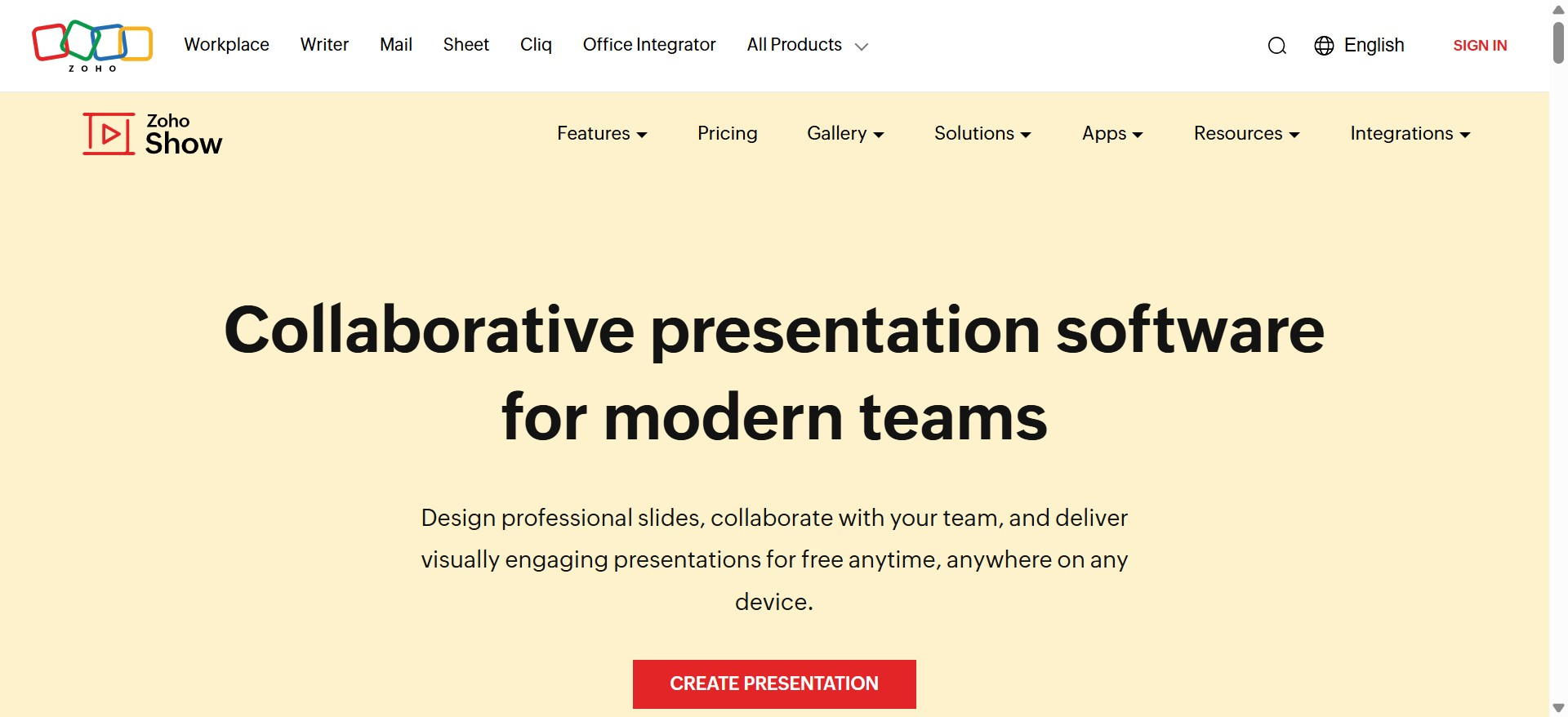 Zoho Show is a cloud-based presentation tool with great collaboration features. It integrates with Zoho’s business suite.