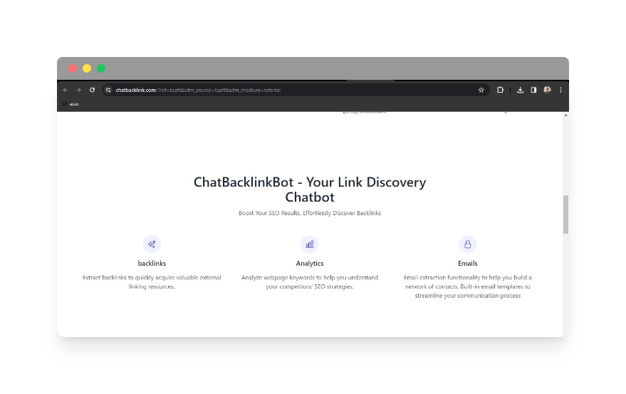 In the realm of AI-powered backlinking tools, one notable player is ChatBacklinkBot. It goes beyond the conventional by integrating chatbot technology to make the backlinking process more conversational and user-friendly.