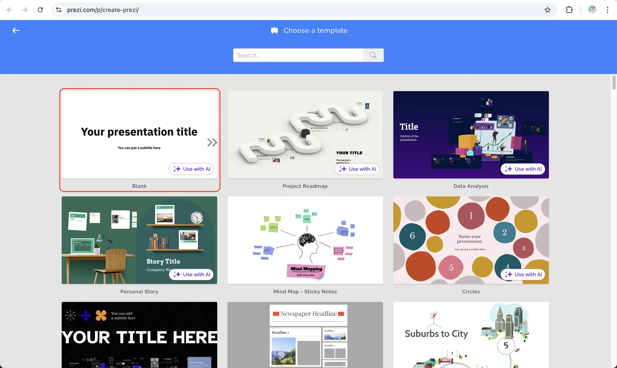 Prezi has a wide range of professionally designed templates across industries and use cases. Choose one that best fits your topic.