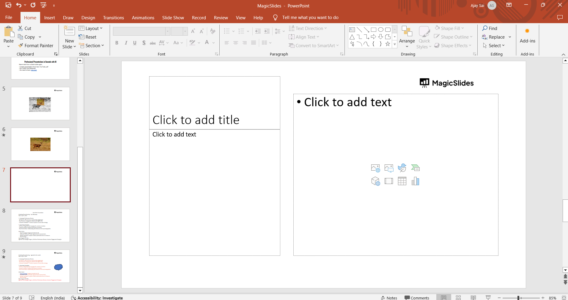 The slide will automatically adjust to the chosen layout, rearranging placeholders for text, images, or other elements.