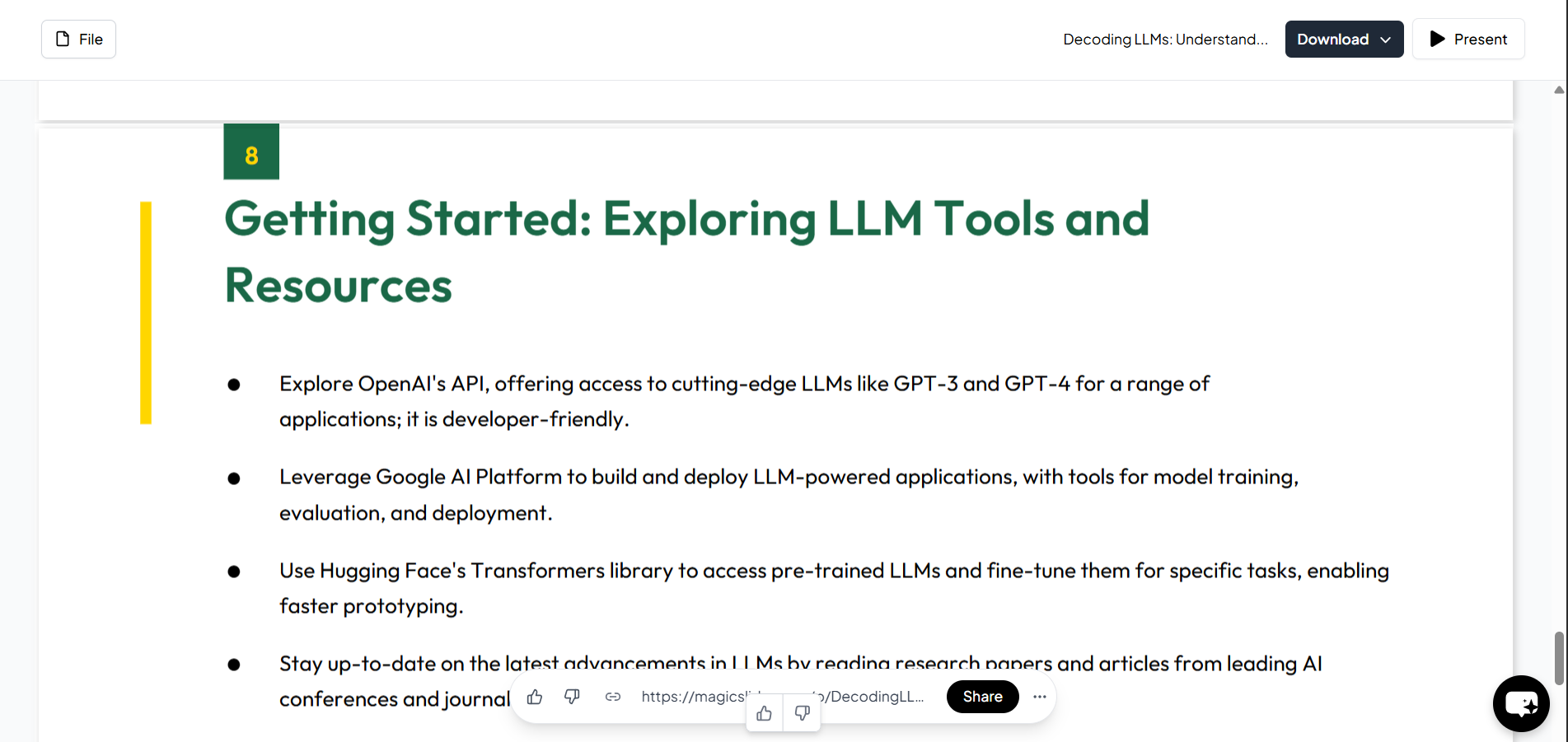 - Use MagicSlides Web App if you want a fully independent AI tool to create PowerPoint files.