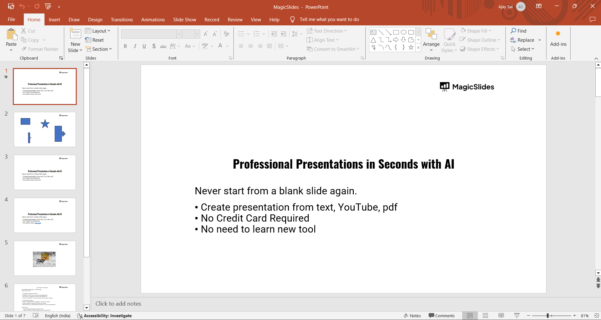 Tired of making presentations? what if we tell you you can make a presentation with just a prompt, convert YouTube videos to PPTs, convert website content to PPTs? Yes! checkout magicslides.app that does all and enjoy the free credits to make presentations in seconds.