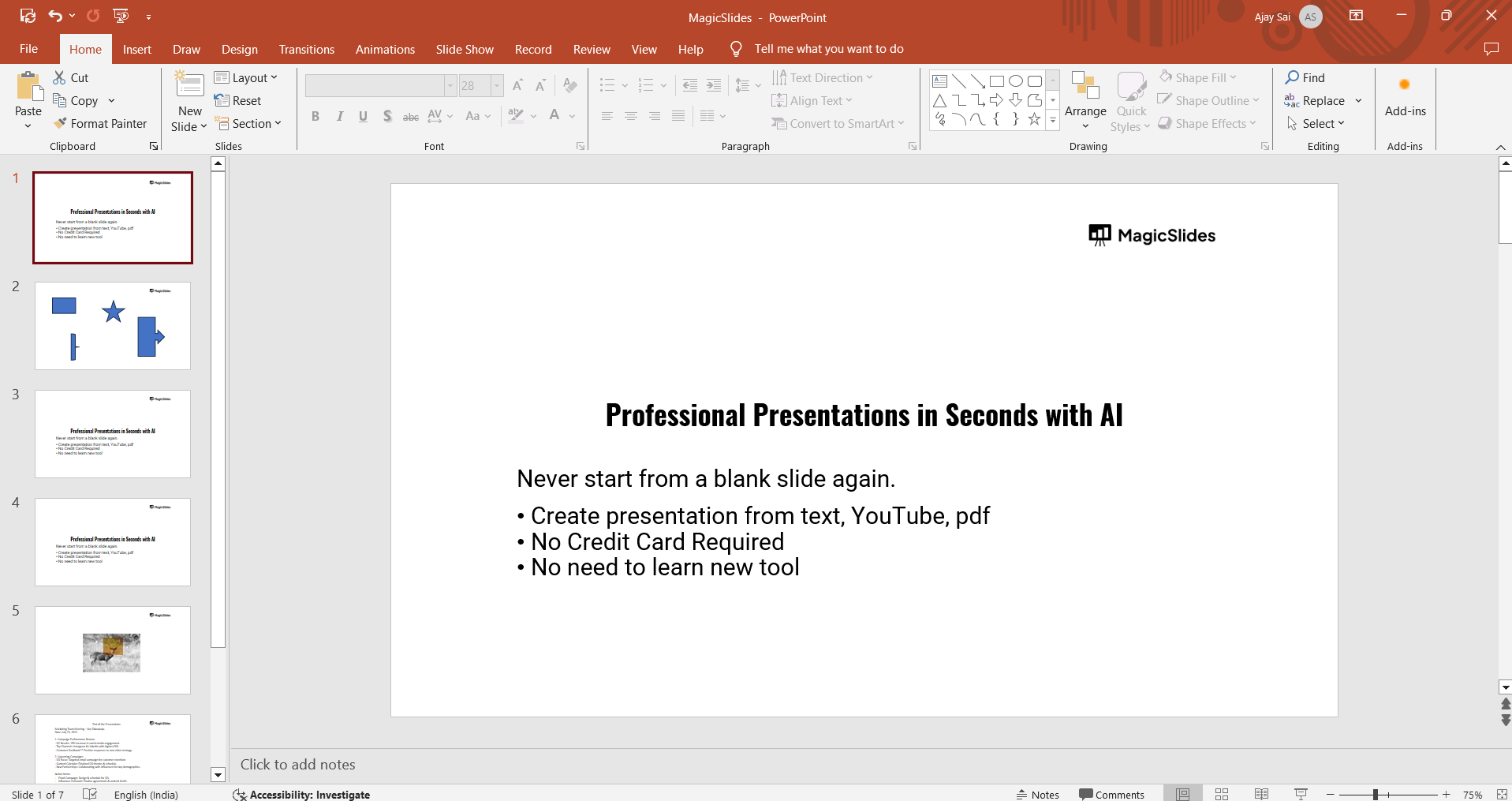 If you don’t have a presentation yet, create a new one by selecting "Blank Presentation" from the start screen.