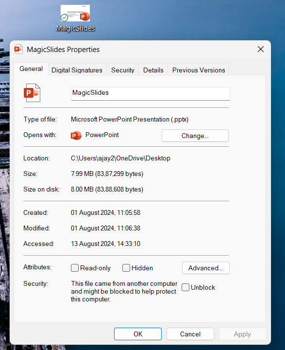 To ensure that your presentation has been saved with the correct file extension, navigate to the folder where you saved it. Check the file name to see if it ends with the extension you selected, such as .pptx or .ppsx.
