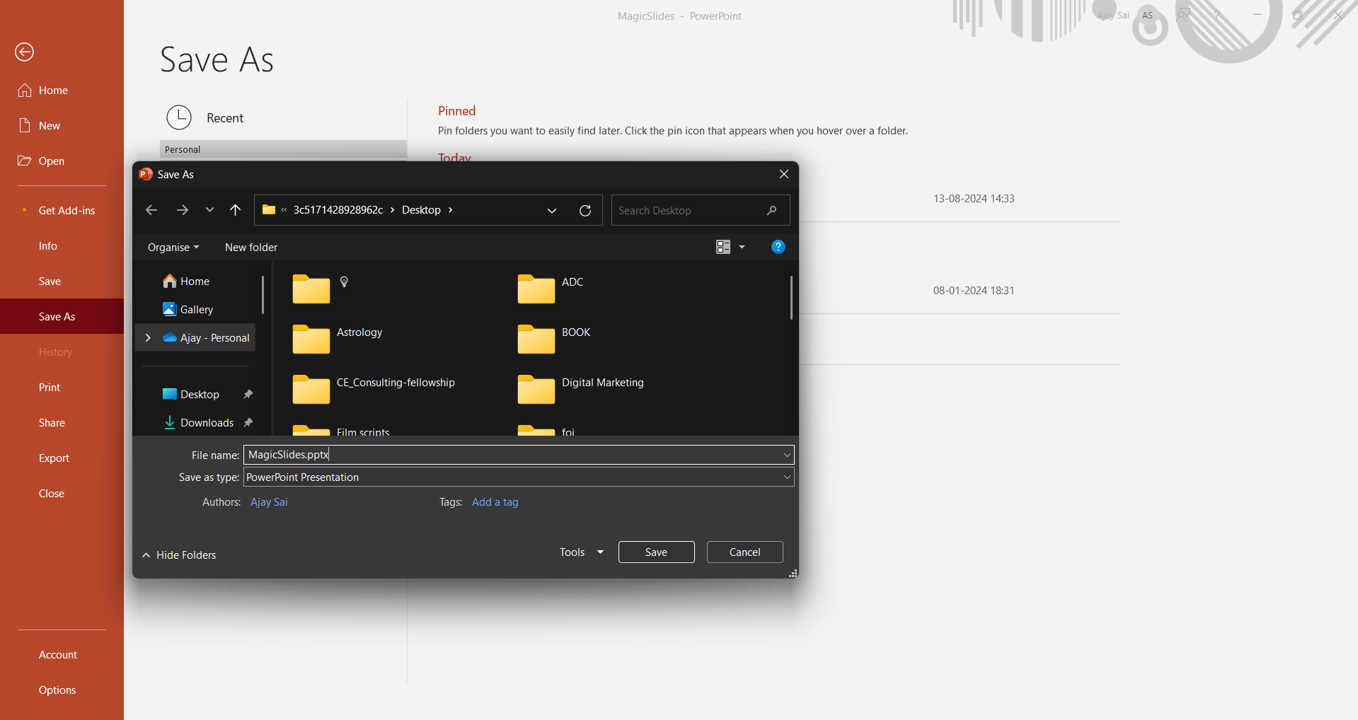Once you've selected the appropriate file extension, click "Save." Your presentation will be saved with the chosen extension, ready to be opened or shared as needed.