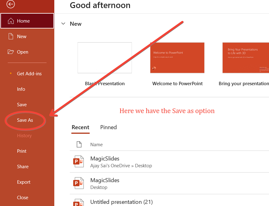 This option allows you to save your presentation with a specific file name and choose the location where you want to save it.