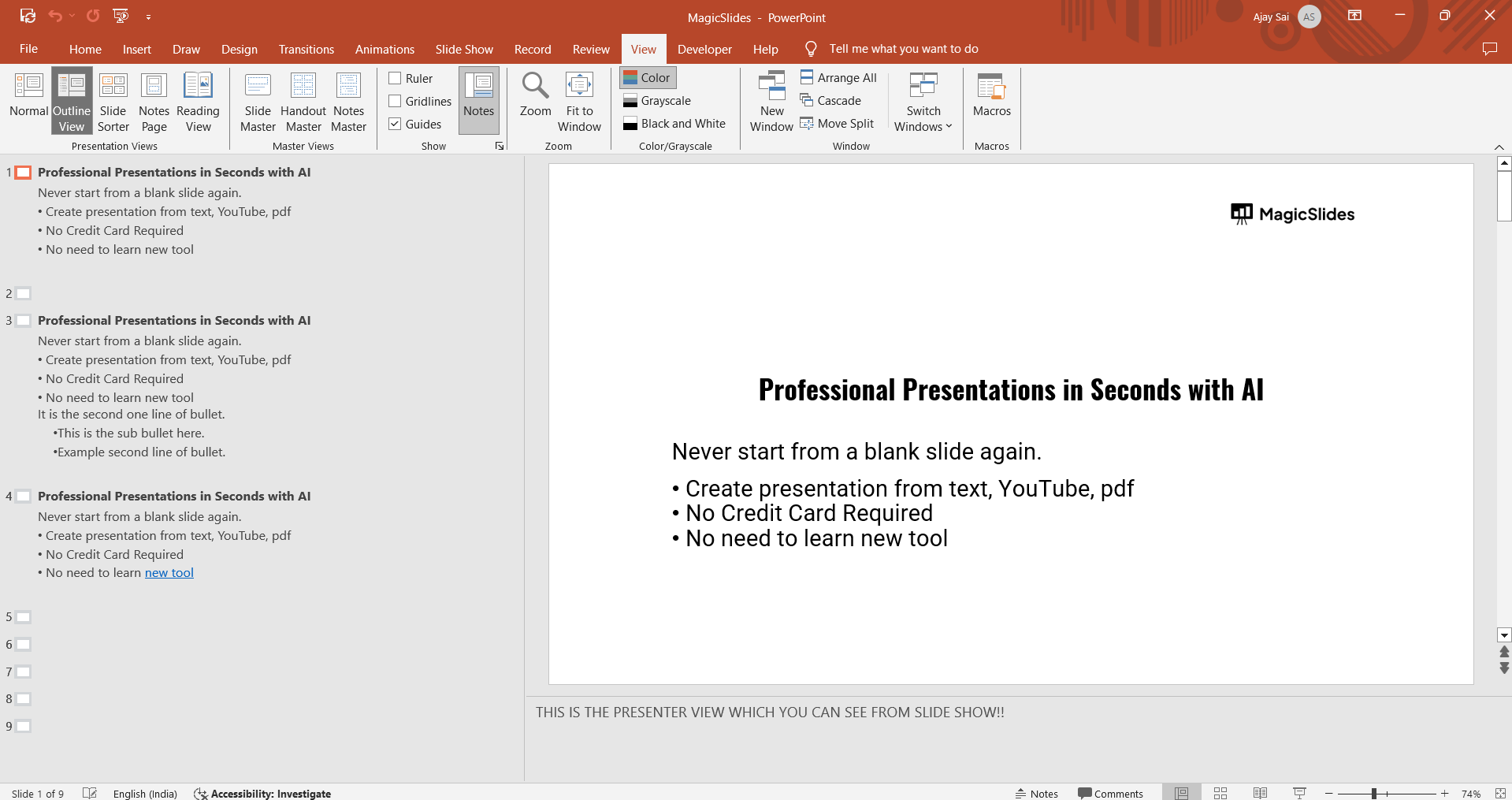 While exploring the PowerPoint Outline Cell feature, don’t forget to check out **MagicSlides.app** to simplify your presentation workflow. Whether you’re working with text, PDFs, or images, MagicSlides.app generates professional slides in seconds!