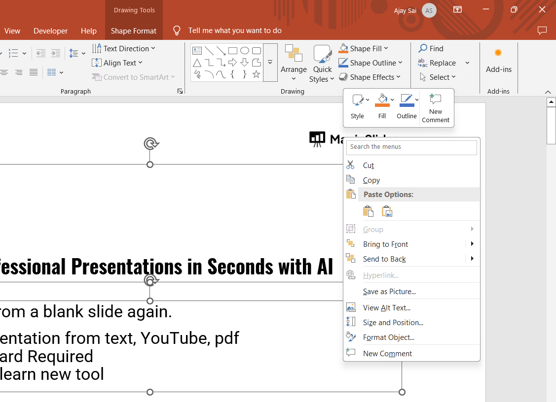 Having trouble selecting different lines in PowerPoint on Mac? Once you’ve resolved this issue, take your presentations to the next level with MagicSlides.app, an AI-powered tool that creates stunning slides instantly with minimal effort!